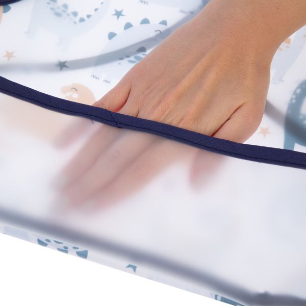 Het Babyjem Vlekbestendig Hemd - Donkerblauwe Dinosaurus biedt optimale bescherming voor de kleding van je kindje tijdens eten, knutselen of schilderen. Het stoere dinosaurusmotief in blauwe en beige tinten maakt het dragen leuk en speels, terwijl de hemdvorm zorgt voor extra bedekking van borst en schouders. Gemaakt van 100% polyester is dit hemd volledig vlekbestendig en eenvoudig schoon te maken met een vochtige doek. Het lichte materiaal en de comfortabele pasvorm zorgen ervoor dat je kindje vrij kan bewegen, terwijl de klittenbandsluiting achter gemakkelijk aan- en uittrekken mogelijk maakt. Het hemd is voorzien van een opvangvakje onderaan om gemorste etensresten op te vangen. Dankzij het praktische ontwerp is het geschikt voor dagelijks gebruik en ideaal voor kinderen die graag ontdekken en creatief bezig zijn.