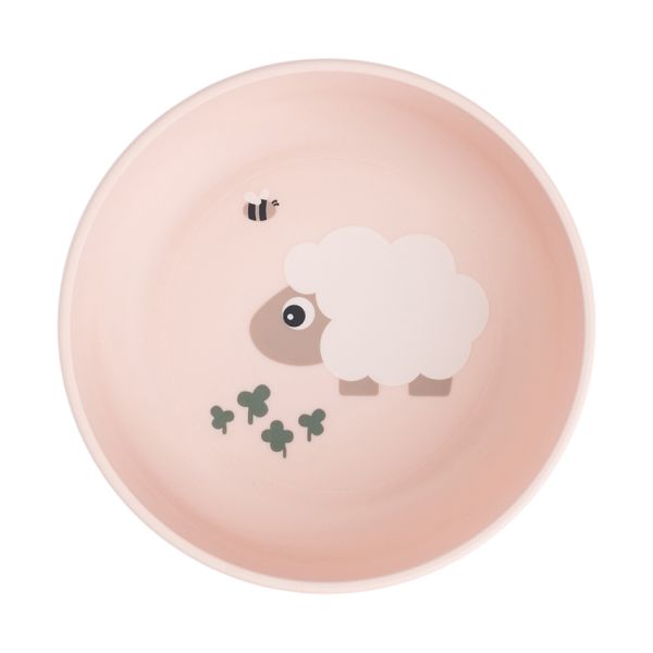 Maak etenstijd extra leuk met het **Done By Deer Tiny Farm Bordje - Powder**! Dit schattige kinderbordje met een vrolijk schaapje en klavertjes is perfect voor kleine eters. Dankzij de opstaande randen blijft het eten beter op het bord liggen, wat ideaal is voor kinderen die zelfstandig leren eten.