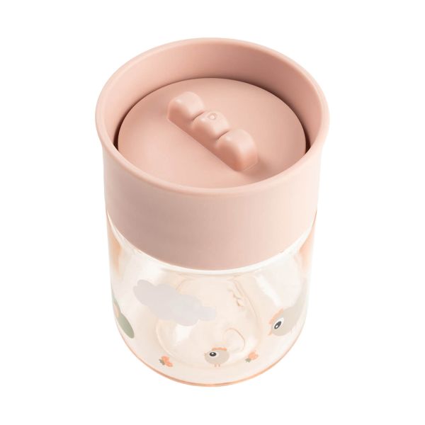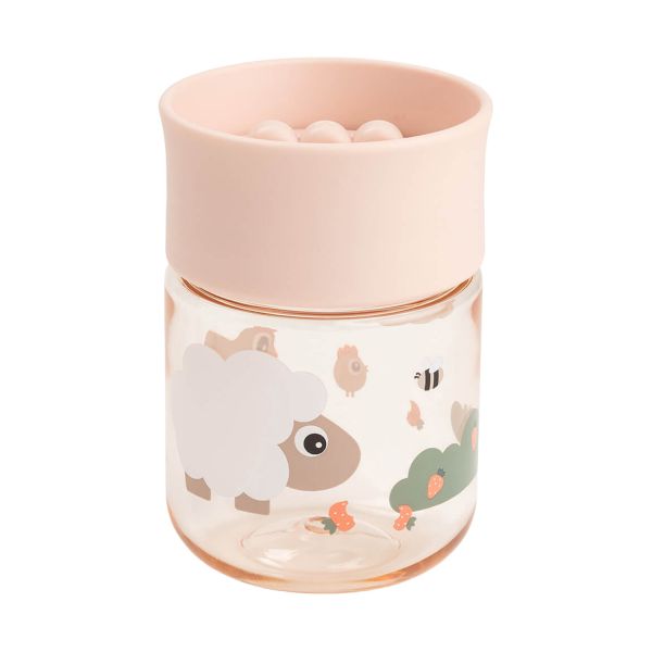 De Done By Deer Tiny Farm 360° Oefenbeker - Powder maakt leren drinken niet alleen makkelijker, maar ook veel leuker! Met zijn zachte poederroze kleur en speelse Tiny Farm illustraties van een schaapje, kippen en bijtjes, is deze beker een vrolijke toevoeging aan elke maaltijd van je kindje.