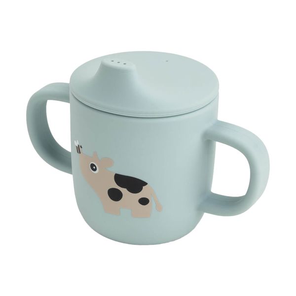 De Done By Deer Tiny Farm Siliconen Tuitbeker - Blue is ideaal voor kindjes die zelfstandig leren drinken. Deze stijlvolle beker uit de Tiny Farm collectie heeft een zachte blauwe kleur en is voorzien van een vrolijk boerderijdier. Dankzij het slimme ontwerp kan je kindje op een veilige en comfortabele manier oefenen met drinken.