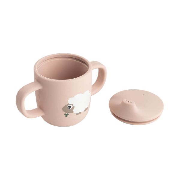 De Done By Deer Tiny Farm Siliconen Tuitbeker - Powder is perfect voor de eerste zelfstandige slokjes van je kindje. Deze stijlvolle beker uit de Tiny Farm collectie is uitgevoerd in een zachte poedertint en voorzien van het lieve Sheepy figuurtje. Dankzij het slimme ontwerp leert je kindje op een veilige en comfortabele manier drinken.