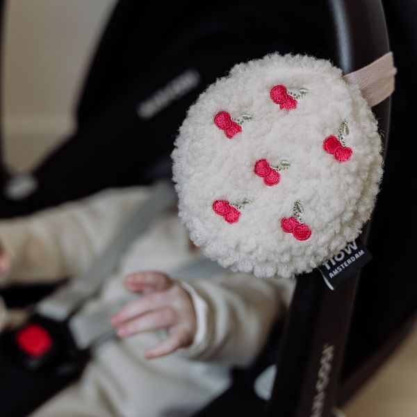 Dankzij het handige lint bevestig je de Lucy gemakkelijk aan de Maxi-Cosi, kinderwagen of draagzak. De zachte teddy stof voelt heerlijk aan en de speelse kersenprint maakt dit knuffeltje extra aantrekkelijk. In de comforter zit een muziekdoosje met twee kalmerende geluiden: een rustgevende hartslag en witte ruis – perfect om je baby te helpen ontspannen en in slaap te vallen.