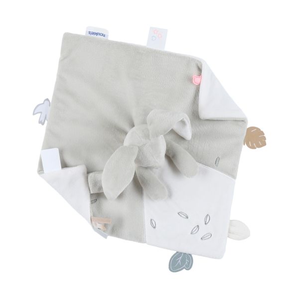 De handige bevestigingslus maakt het mogelijk om het doekje vast te maken aan een Noukie's pyjama, een fopspeen of aan een luiertas – zo raak je het nooit kwijt. De opening in het hoofdje van het konijntje maakt het extra speels: gebruik het als pop voor interactief spel en troostmomenten.