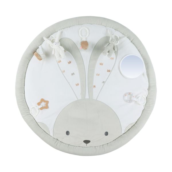 De speelmat bevat allerlei interactieve elementen zoals knisperende oren, een bijtspeeltje, een spiegel en een rammelaar met kralen. Deze prikkelen het gehoor, de tastzin en de visuele ontwikkeling. Terwijl je baby rolt, reikt en duwt, bevordert het kleed op natuurlijke wijze de fijne motoriek en hand-oogcoördinatie. De stevige vulling zorgt voor comfort en veiligheid tijdens elk moment van ontdekking.