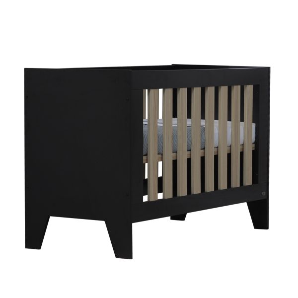 Het ledikant heeft een in hoogte verstelbare bodem en platte houtdecor spijlen aan de zijkant. Dit ledikant voldoet aan alle veiligheidseisen.