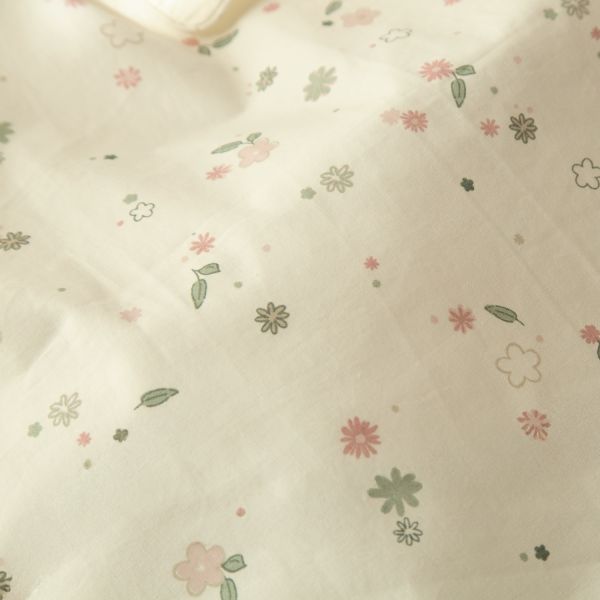 De Vintage Flowers print met fijne bloemetjes in roze en groen sluit mooi aan bij andere producten uit dezelfde collectie, waardoor je eenvoudig een stijlvolle babyuitzet samenstelt.