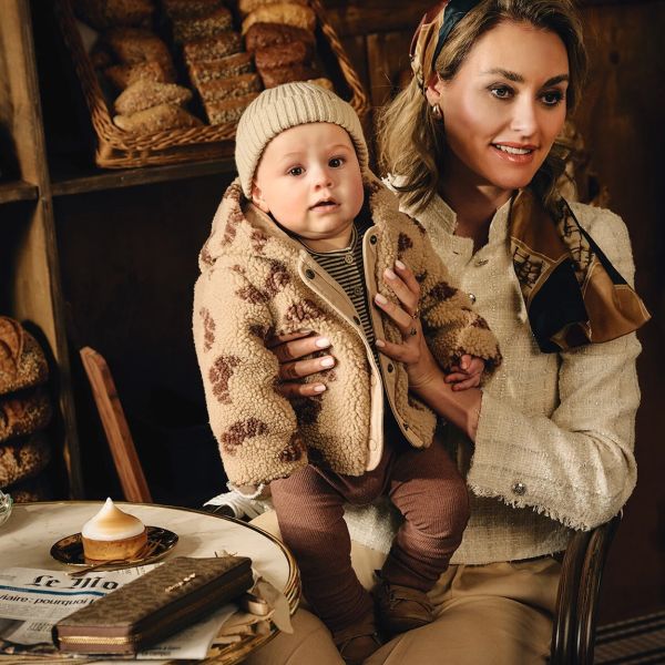 Dit heerlijke jasje heeft een warme capuchon en een super schattige croissantjes print. Deze newborn essential houd je kleintje lekker warm tijdens de koudere dagen.