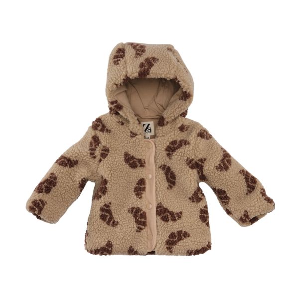 Dit heerlijke jasje heeft een warme capuchon en een super schattige croissantjes print. Deze newborn essential houd je kleintje lekker warm tijdens de koudere dagen.